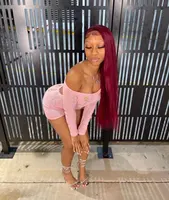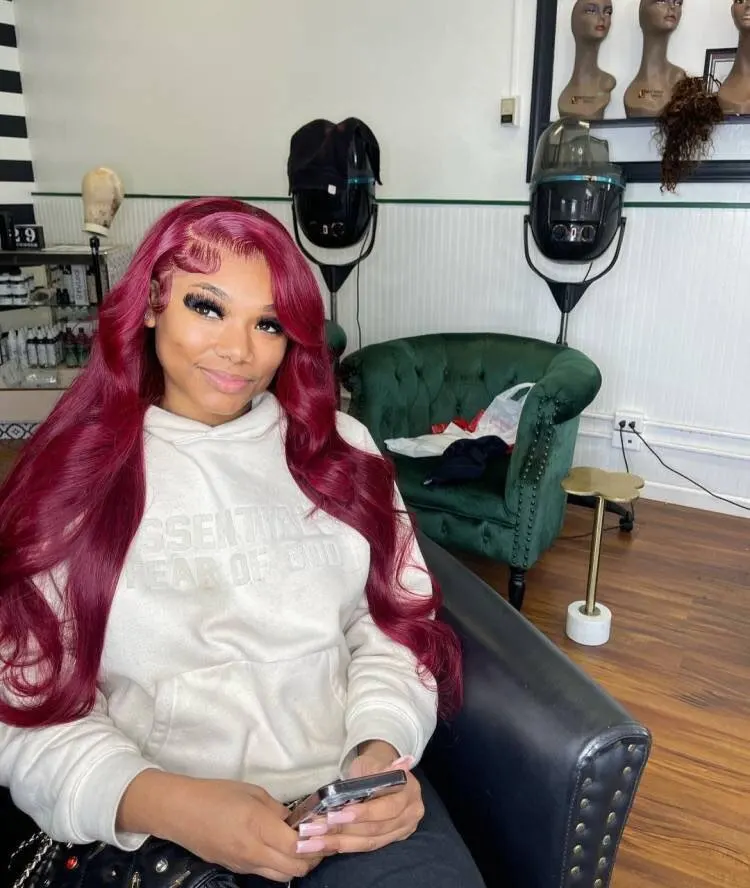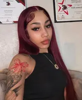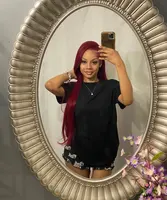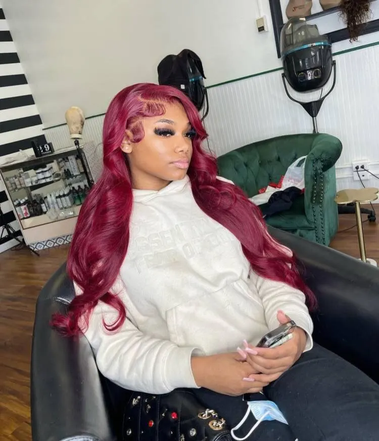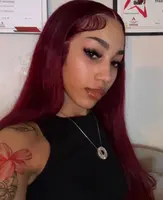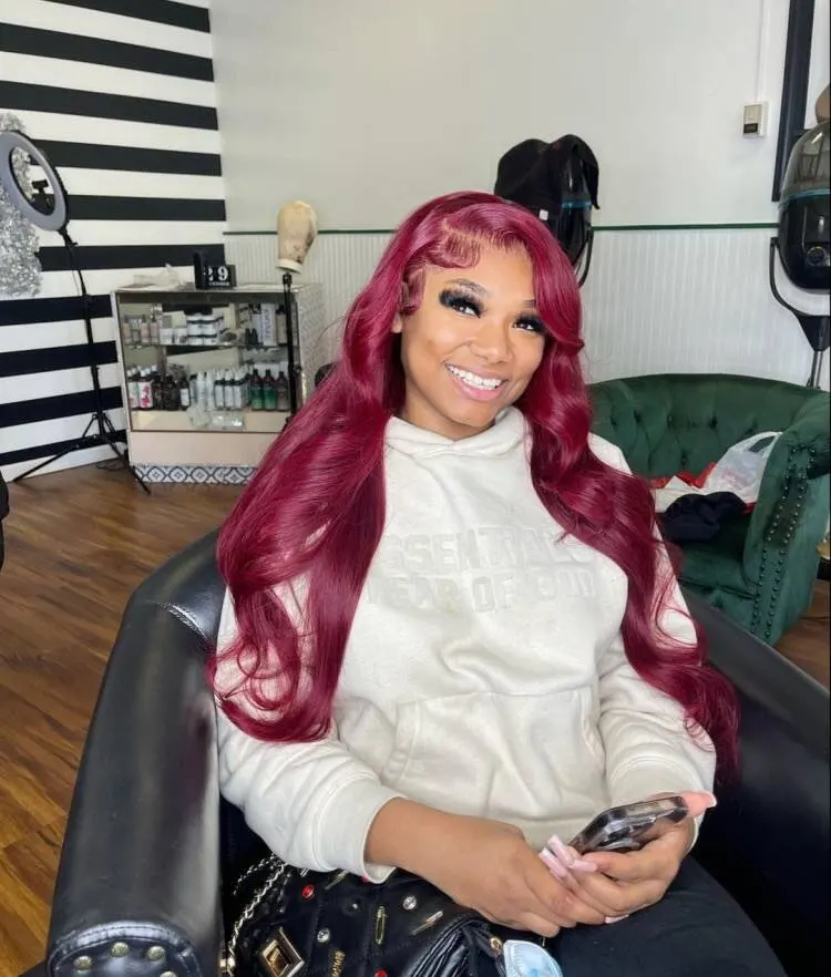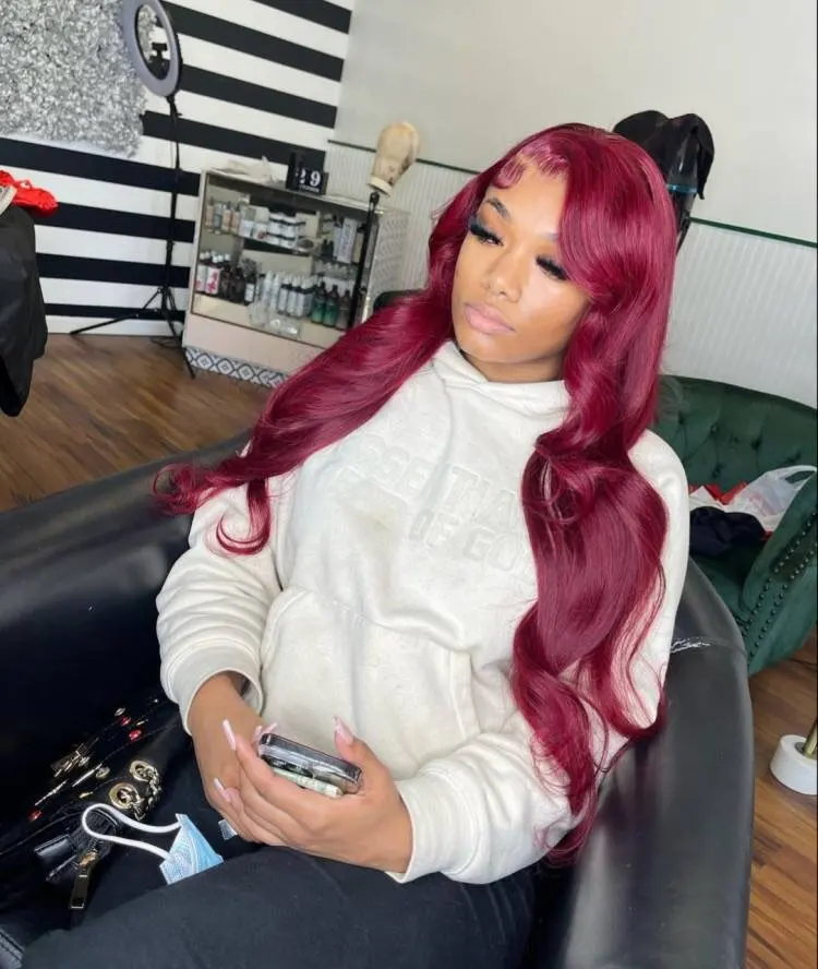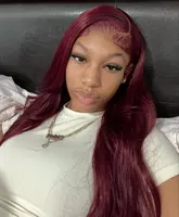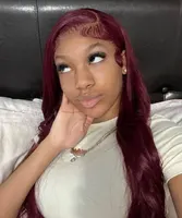 In Stock13×4 HD Lace Front Wig Human Hair Wigs 99J Red Burgundy Colored HD Transparent Pre Plucked Lace Frontal Human Hair Wigs Straight