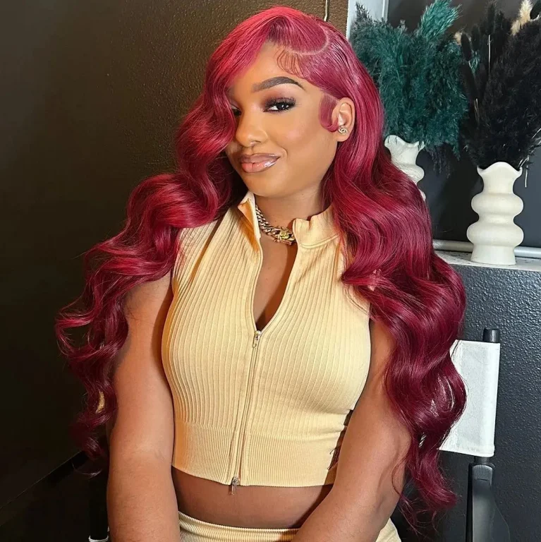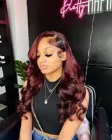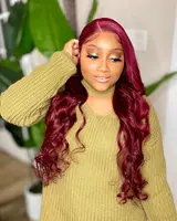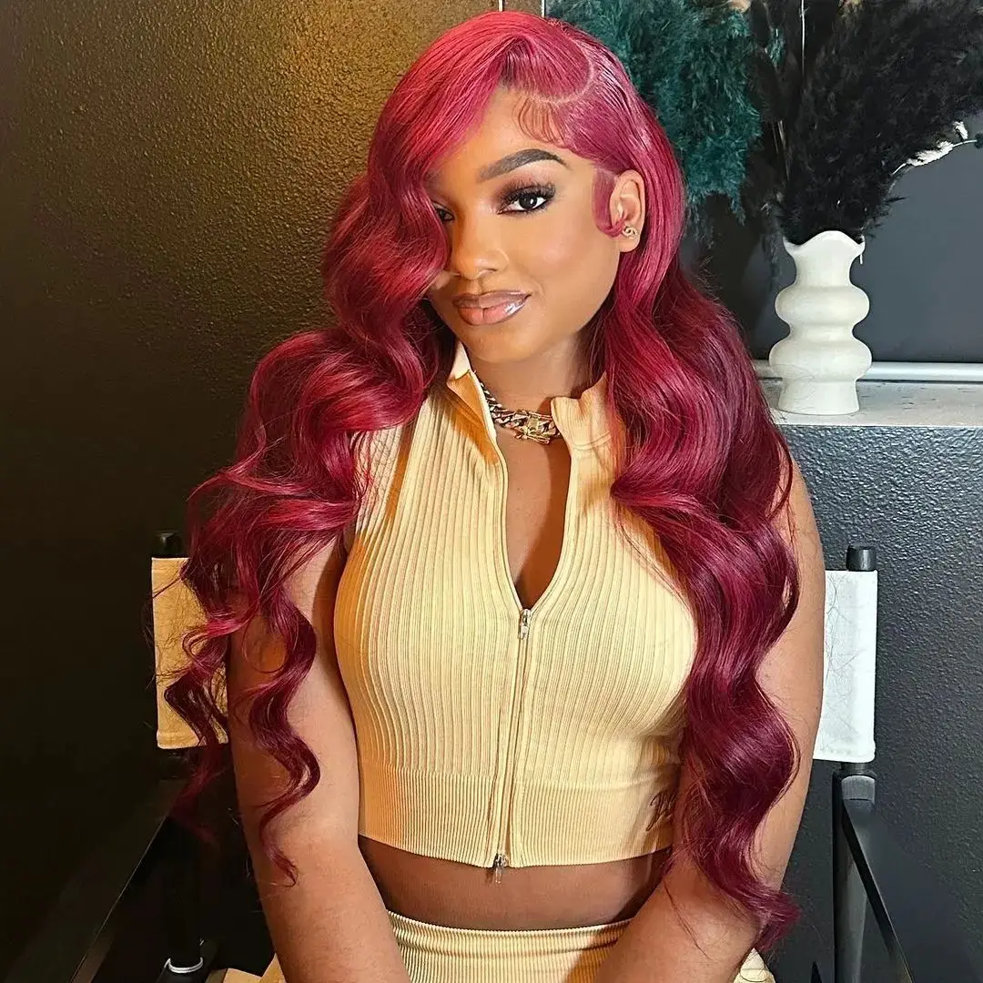 In Stock13×6 99J Burgundy Lace Front Wig Body Wave Colored Transparent Lace Wig Peruvian 13×4 Lace Frontal Wig Human Hair Wigs Red Wigs