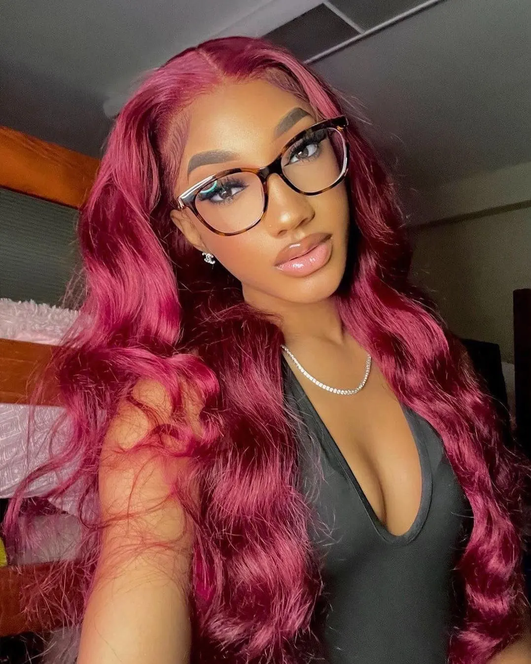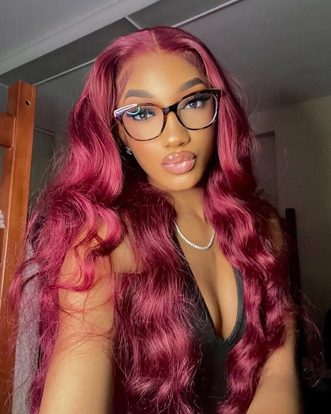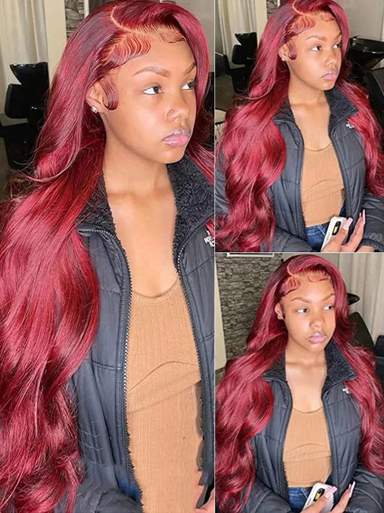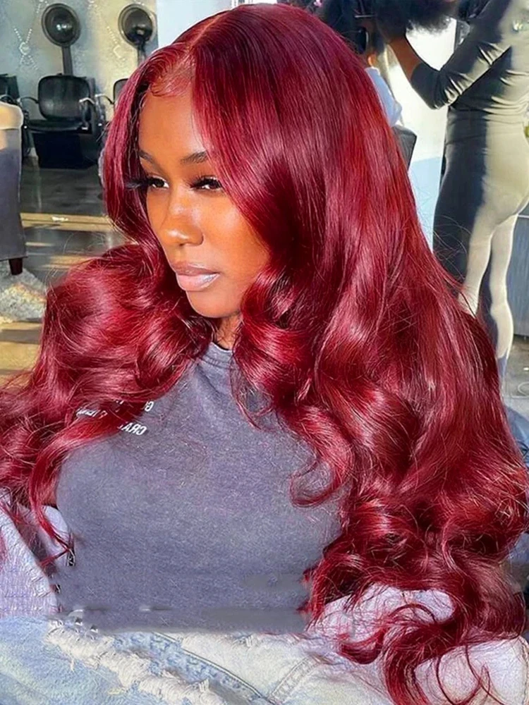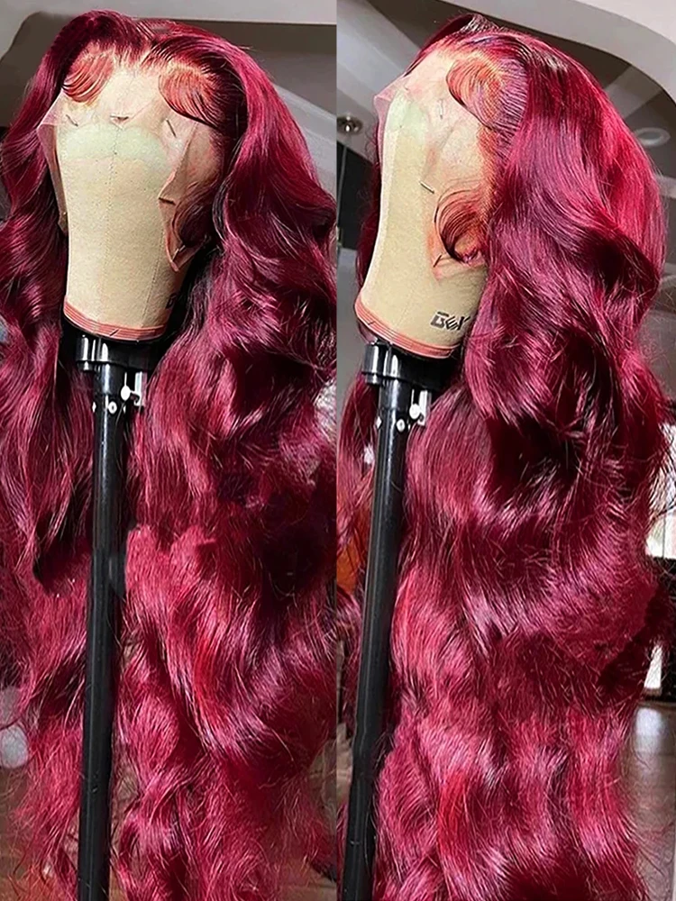 In Stock250% Burgundy Body Wave Red Lace Front Human Hair Wigs 99J Colored 13×6 HD Lace Frontal Human Hair Wig Brazilian Wigs For Women