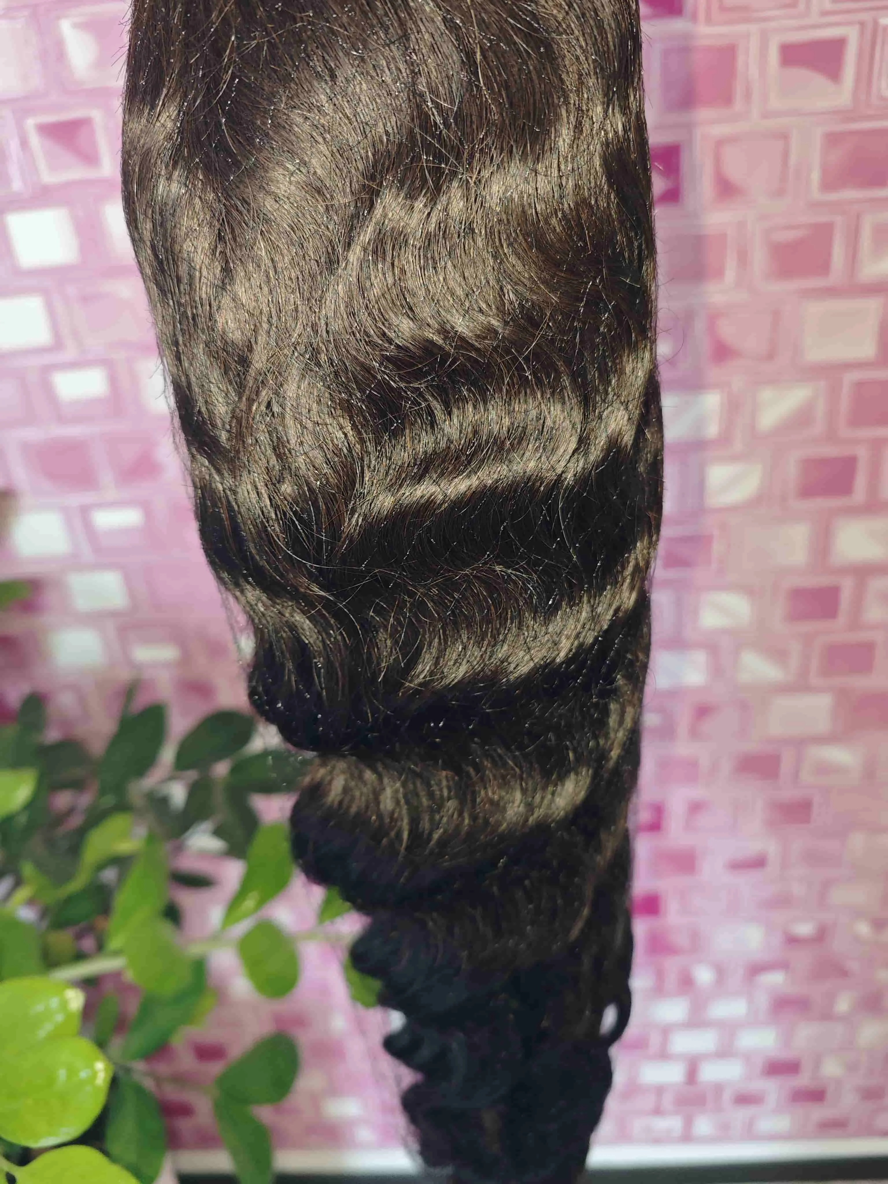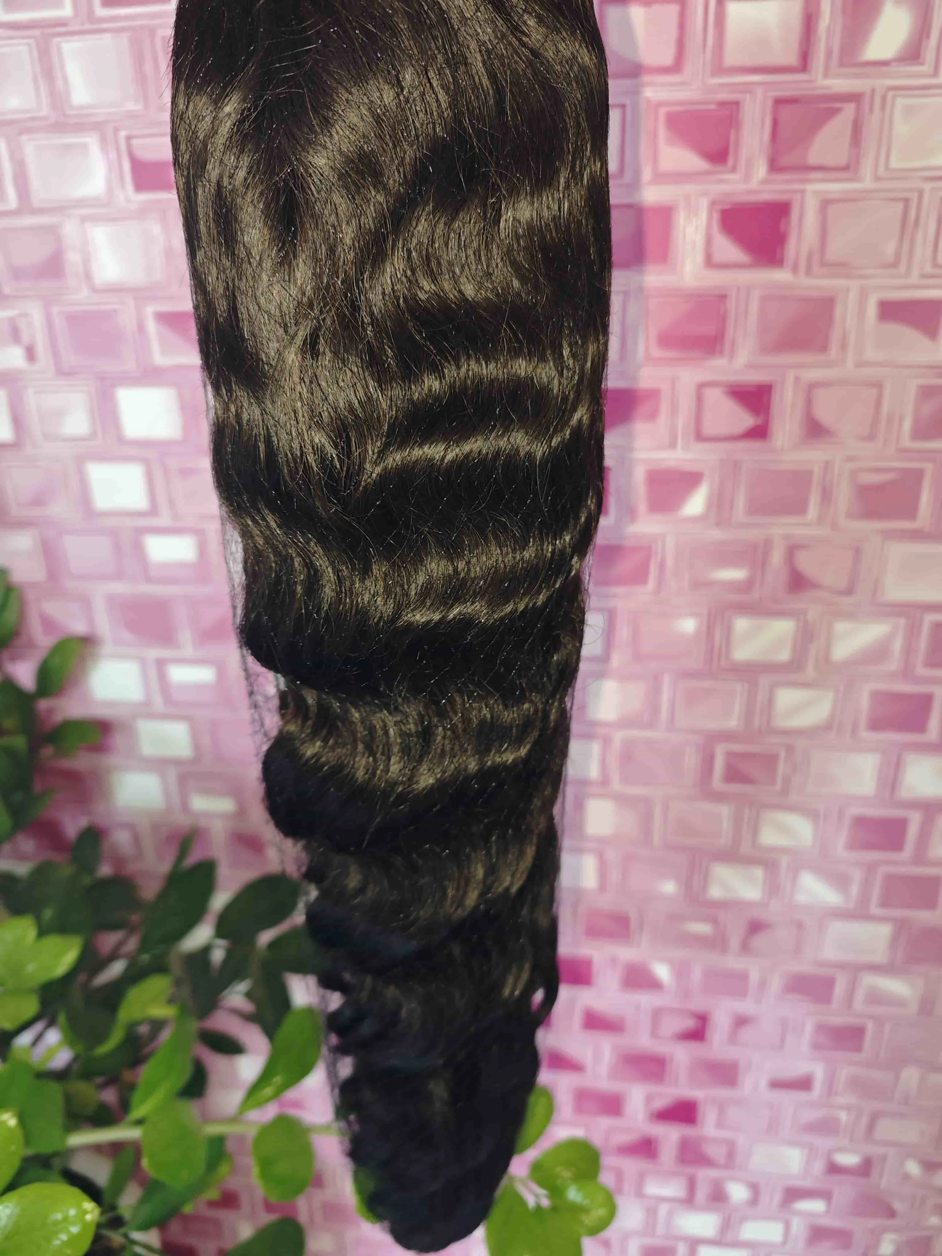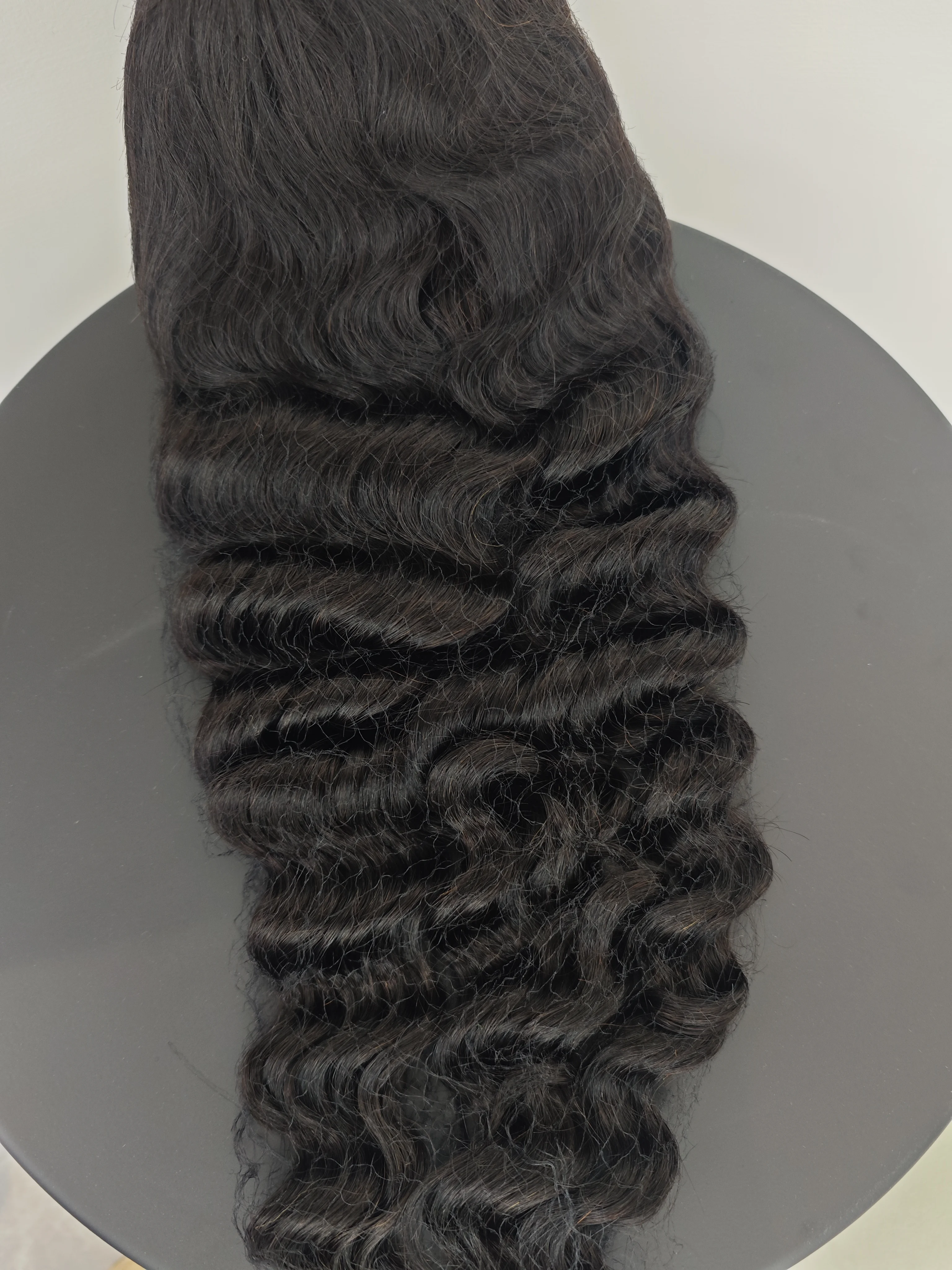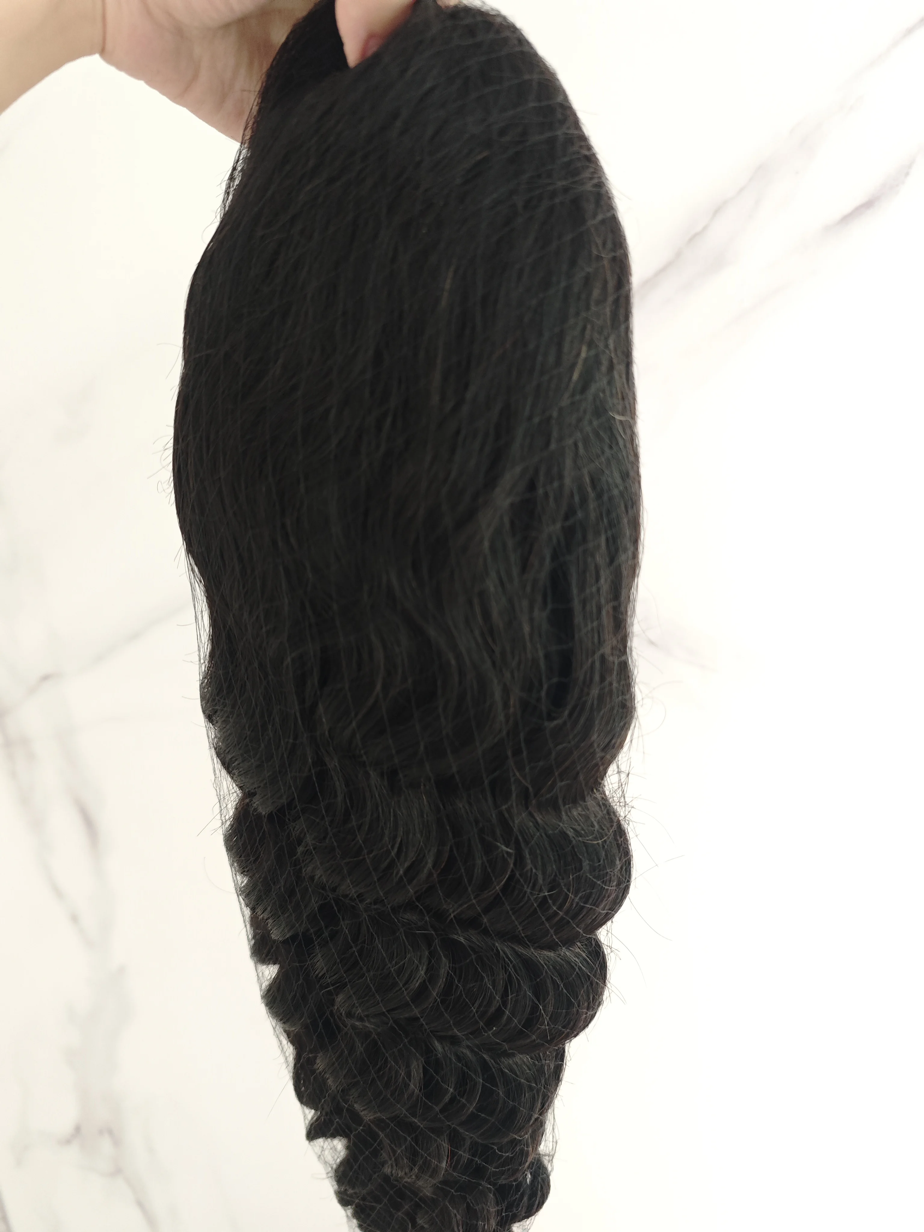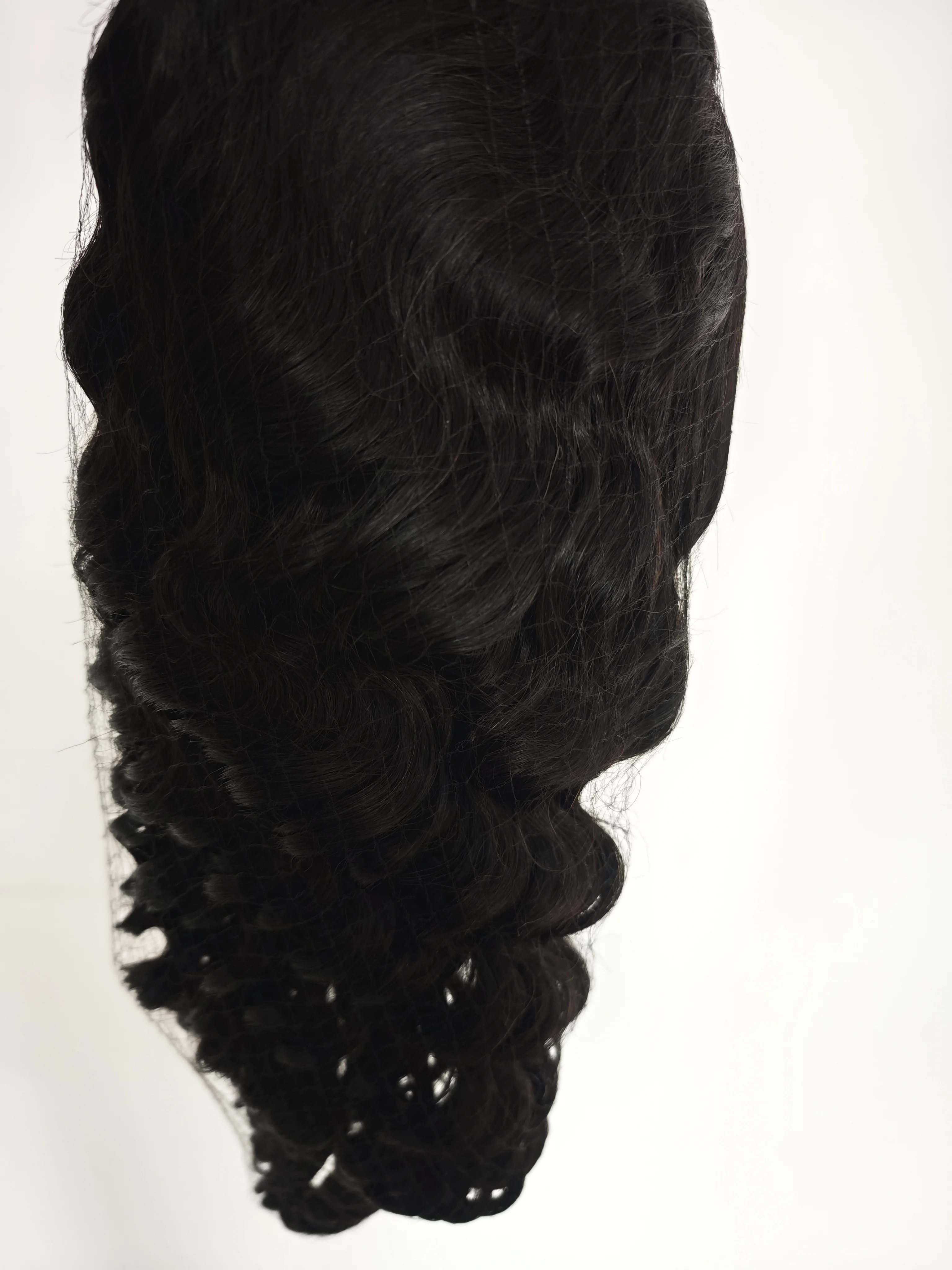 The hair is very soft and bouncy, the knots are small, this wavy wig has just the right amount of volume, I love it, it looks gorgeous !!!!!