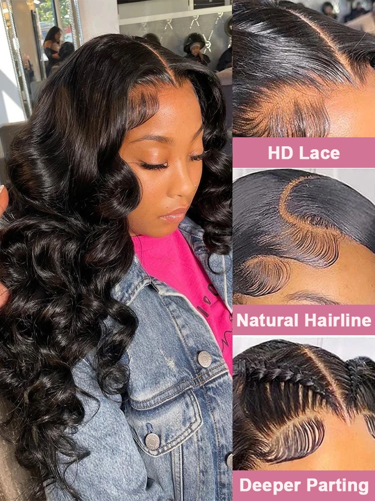 In Stock250 Density Loose Deep Wave Human Hair Frontal Wig 13×6 HD Lace Brazilian Curly Wigs 100% Human Hair Lace Closure Wig Preplucked