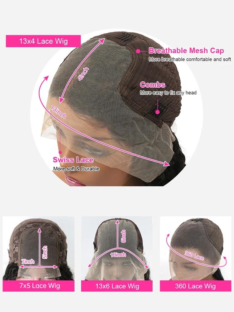 30 40 Inches 13×6 Deep Wave Human Hair Wig 13×4 360 HD Lace Frontal Hair Wig 7×5 Glueless Curly Lace Front Human Hair Wigs 250%
