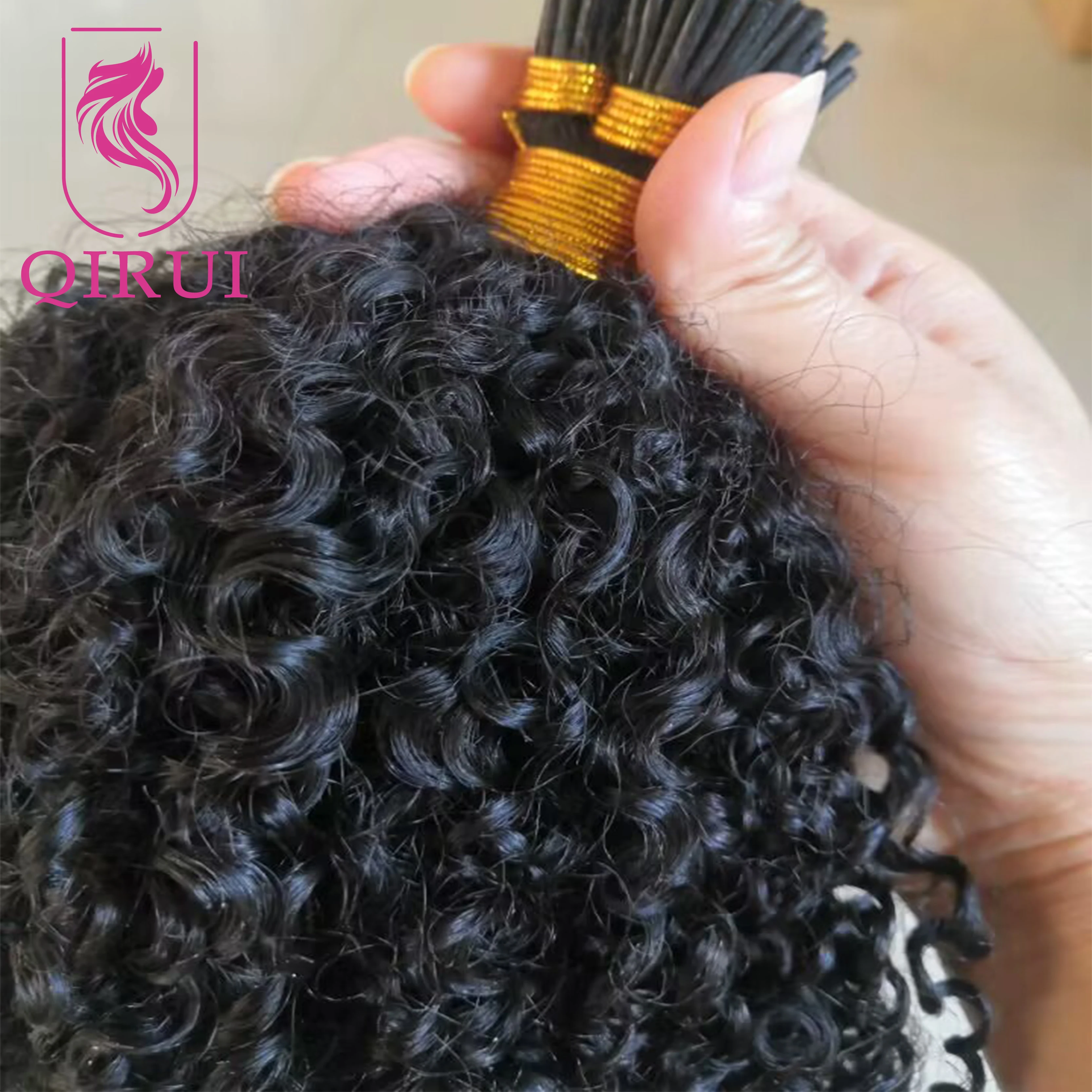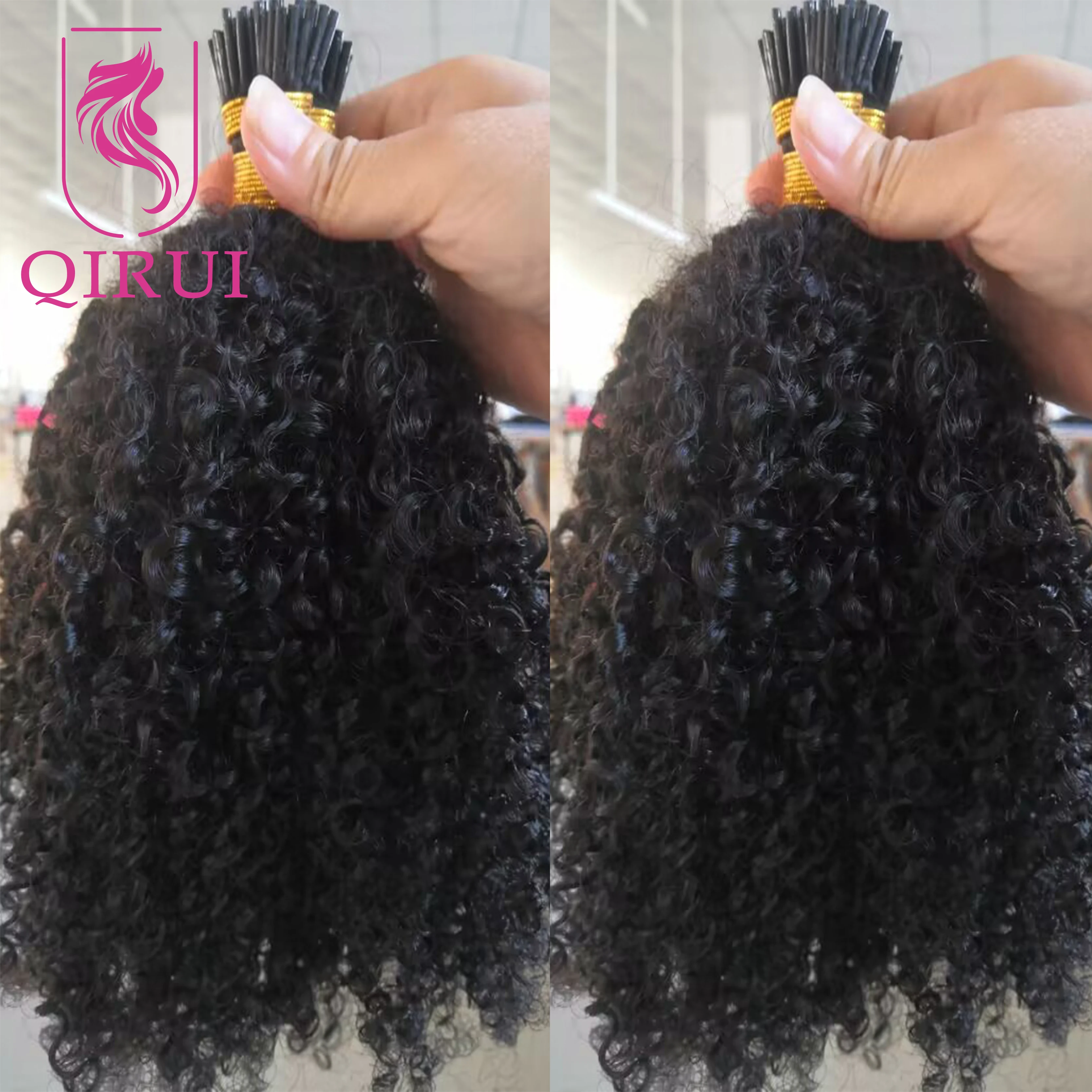 Afro Kinky Curly I Tip Hair Extensions Microlink Human Hair Extensions Brazilian Double Drawn Full Ends I Tip Hair Extensions