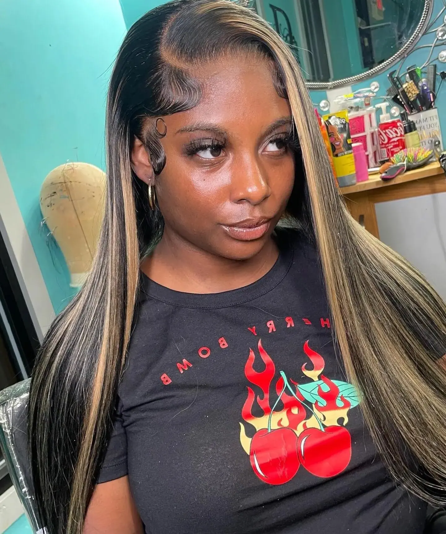 Wow gorgeous lace and gorgeous highlights!!Very fast shipping Love this hair so much. Y’all!This hair is literally so softSeriously.package came very neatly and I received some unexpected freebies also wig was super cute and easy to install!!!also I LOVE the parting of the wig!very silky and classy looking.