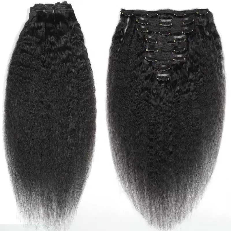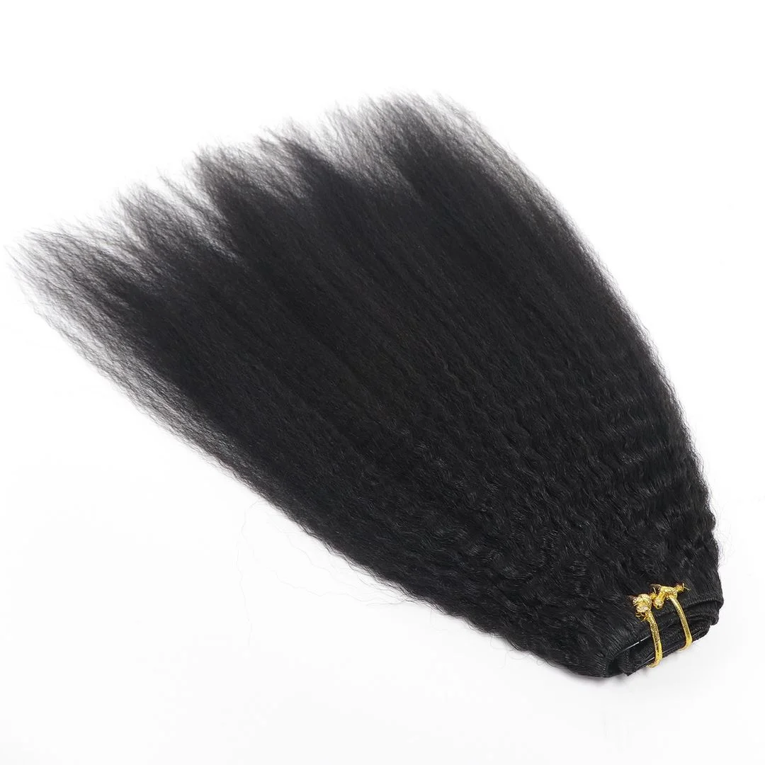 Clip In Kinky Straight Human Hair Extensions Clips In Extension Full Head Brazilian Clip on Curly #1B Hair Extension For Women