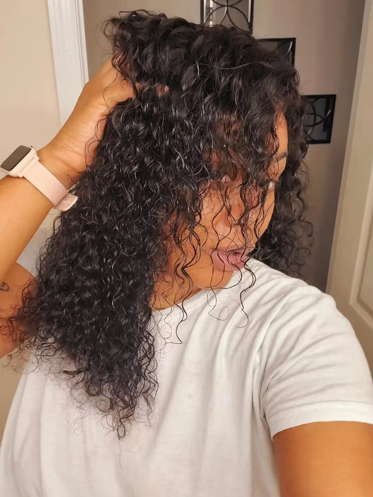 It has a wavy curl pattern, not too loose and not too tight. It’s soft, thick, no shedding, and the lace was easy to blend. Overall great wig.