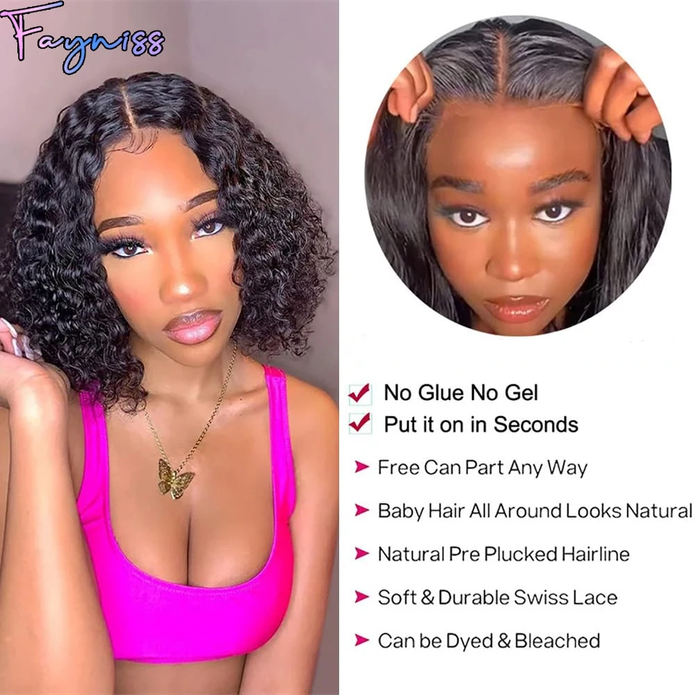 Fayniss Glueless Water Wave Bob Wigs For Women Glueless Short Bob Wig 100% Human Hair Wigs Pre Cut Lace