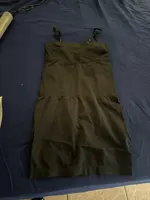 A chic dress, it is not difficult to dress, holds the chest and stomach, but does not crush does not crawl up the legs when walking. Dense, will not go on a hot day. Straps detachable