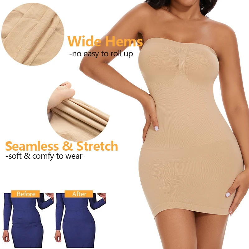 Seamless Slips For Women Off Shoulder Under Dress Shapewear Dresses Tummy Control Skirt Body Shaping Smoother