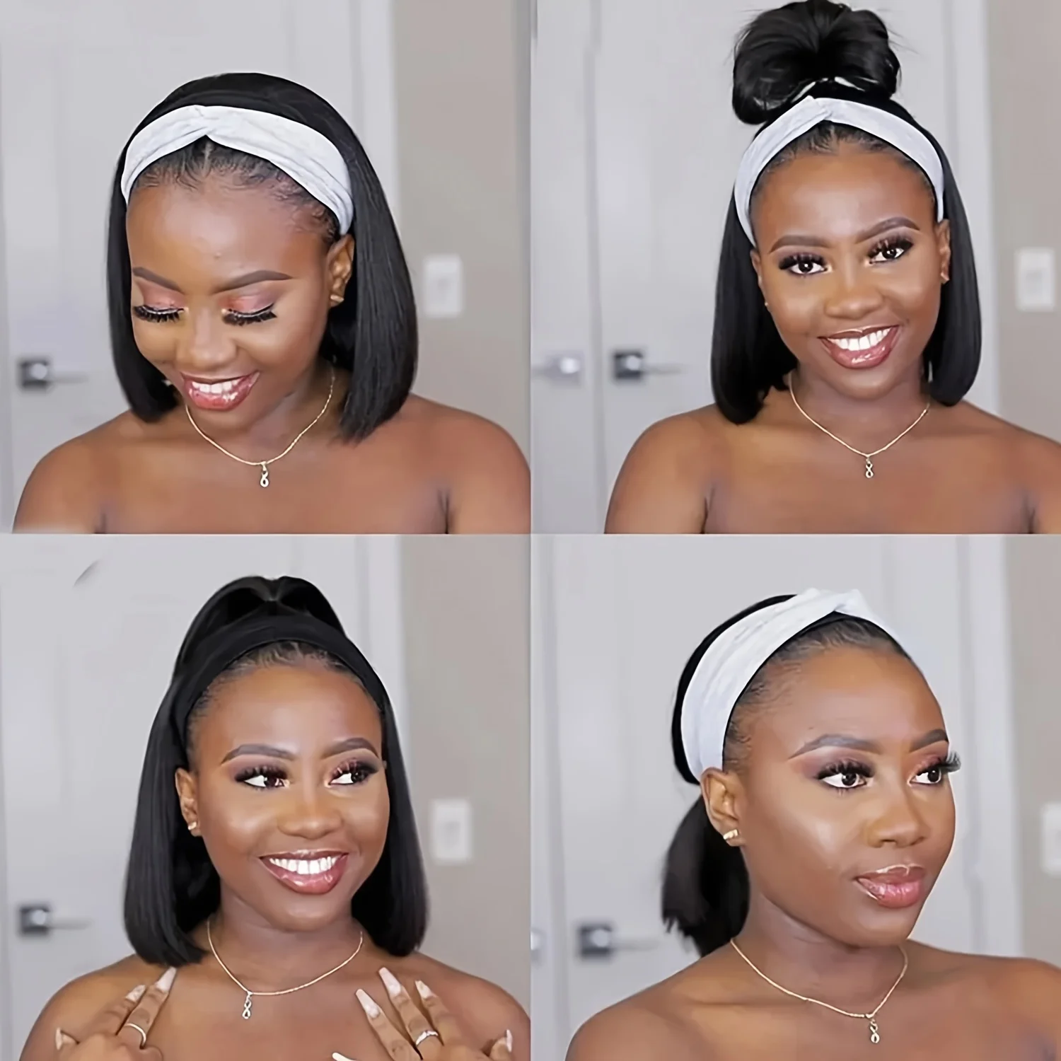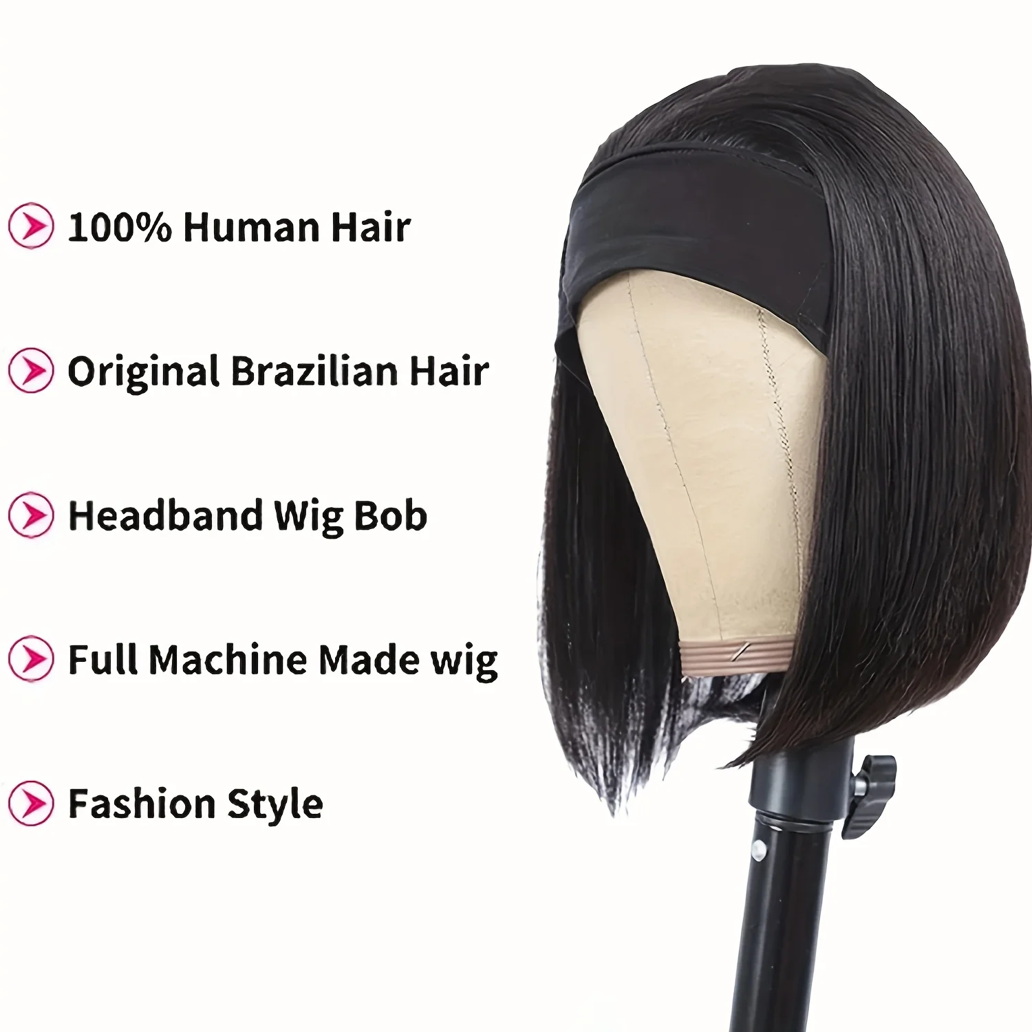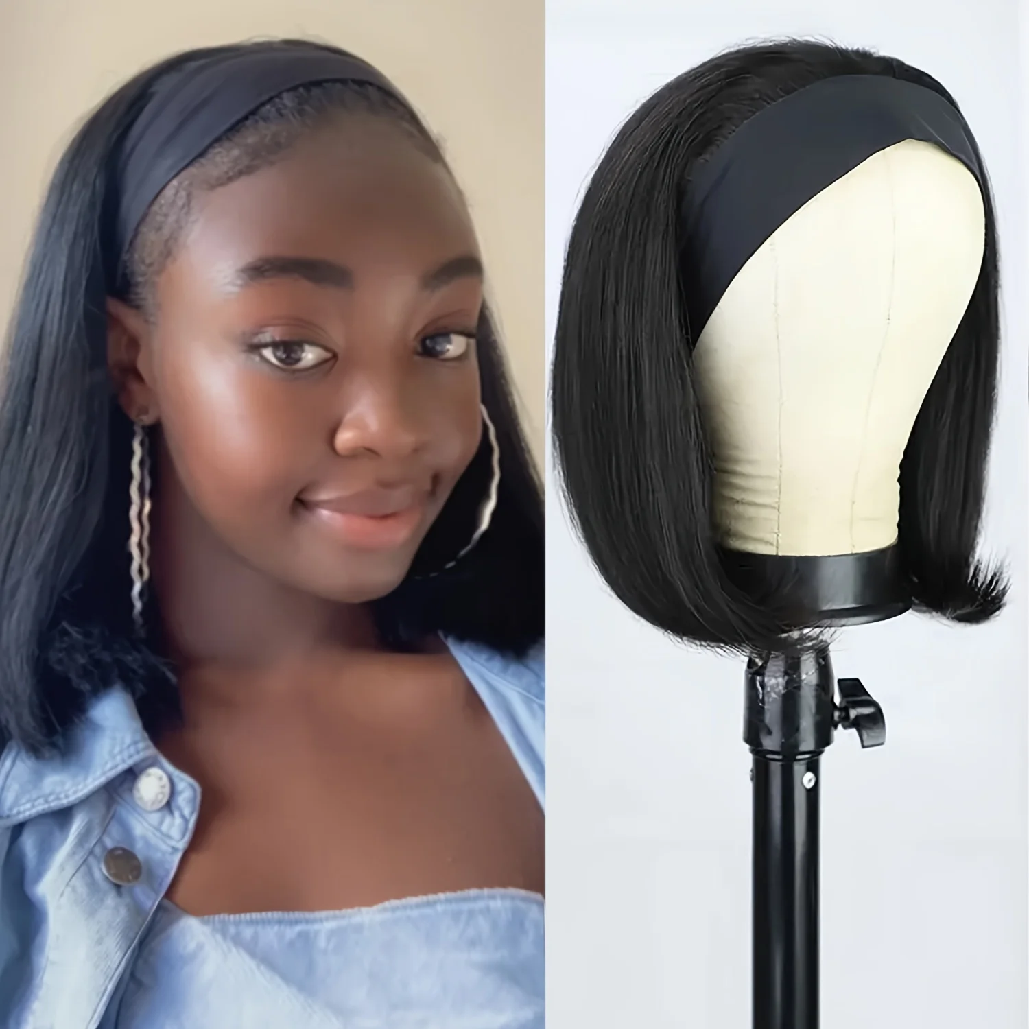 In StockShort Bob Wigs Straight Headband Wig 100% Human Hair Wigs for Women None Lace Front Wig Machine Made Headband Wig for Daily Use