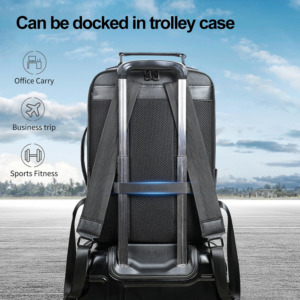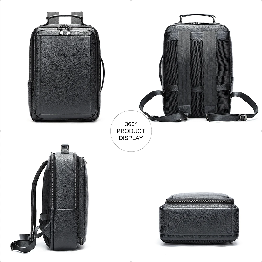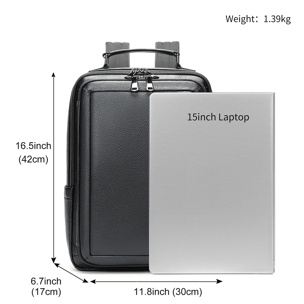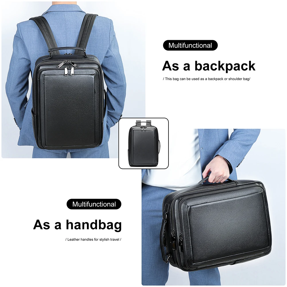 WESTAL Black Leather Backpack for Teenager Men Daypack with Strap for Carrying Multi-pockets Backpacks Handbags School Bags 2290