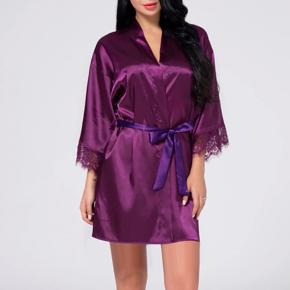 Women Sexy Lingerie Satin Robes Lace Nightdress Nightwear Sleepwear Kimono Sexy Lingerie Satin Robes Lace Nightdress Nightwear